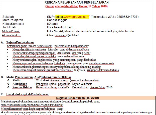 Demikian RPP 1 Lembar SMP/MTS Bahasa Inggris Kelas 9 Semester 1 di atas yang kami bagikan semoga 8 dari 10