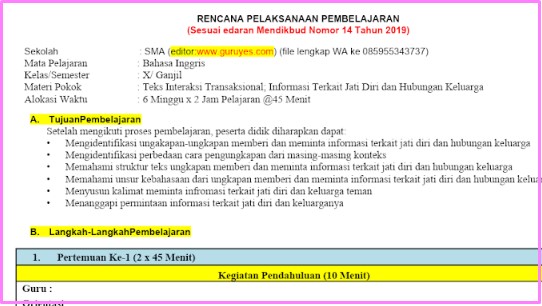 sebelum masuk melaksanakan pembelajaran. RPP SMA/SMK Kelas 10 Semester 1 ini adalah perangkat yang berisi hanya 3 komponen yang