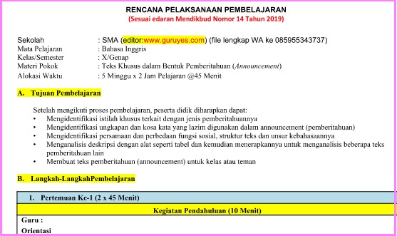 Download Juga : RPP 1 Lembar SMA 2020 Kelas 10 11 12 semester 1 dan 2