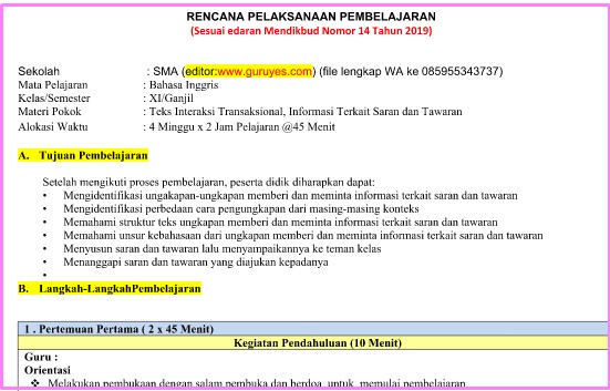 Demikian RPP 1 Lembar SMA/SMK Kelas 11 Semester 1 di atas yang kami bagikan semoga bisa