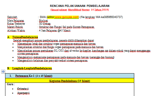 | RPP 1 Lembar Biologi SMA/SMK Kelas 11 Semester 2 |