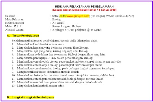 Download Juga : RPP 1 Lembar SMA 2020 Kelas 10 11 12 semester 1 dan 2