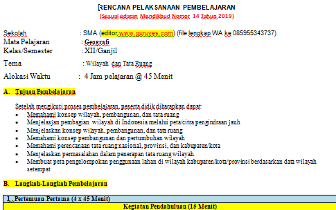 | RPP 1 Lembar Geografi SMA/SMK Kelas 12 Semester 1 |