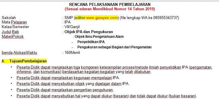 - RPP 1 Lembar IPA SMP Kelas 7 Semester Ganjil ( DOWNLOAD )