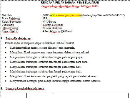 berguna anda berada di website guruyes ini silahkan download RPP 1 Lembar SMP/MTS IPA Kelas 8 Semester 2 di bawah ini, dan jangan lupa bagikan ke Rekan guru yang