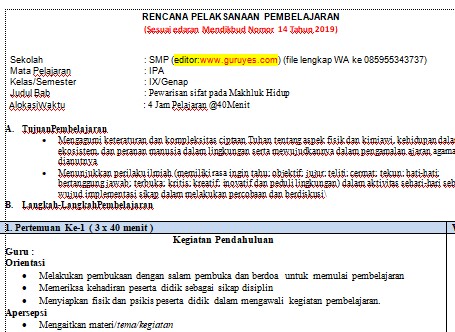 | RPP 1 Lembar IPA SMP Kelas 9 Semester 2 |