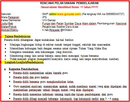 sebelum masuk melaksanakan pembelajaran. RPP SMP Kelas 8 Semester 2 ini adalah perangkat yang berisi hanya 3 komponen yang