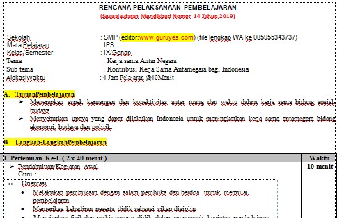 berguna anda berada di website guruyes ini silahkan download RPP 1 Lembar SMP/MTSIPS Kelas 9 Semester 2 di bawah ini, dan jangan lupa bagikan ke Rekan guru yang