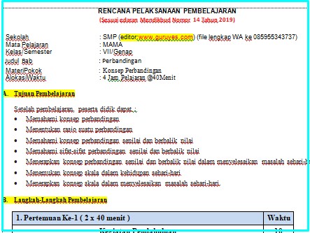 anda berada di website guruyes ini silahkan download RPP 1 Lembar SMP/MTS Matematika