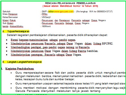 Demikian RPP 1 Lembar Kelas 7 SMP Kelas 7 Semester 1 di atas yang kami bagikan semoga bisa membantu