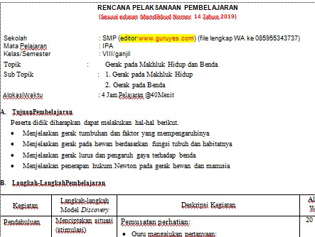 RPP 1 LEMBAR IPA SMP Kelas 8 Semester 1 (DOWNLOAD)