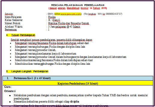 masuk melaksanakan pembelajaran. RPP SMA/SMK Kelas 10 Semester 1 ini adalah perangkat yang berisi hanya 3 komponen yang