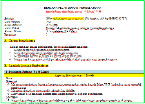 RPP 1 Lembar SMA/SMK PAI Kelas
