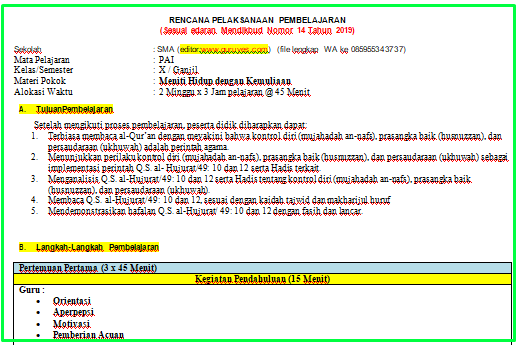 berguna anda berada di website guruyes ini silahkan download RPP 1 Lembar SMA/SMK/MA PAI Kelas
