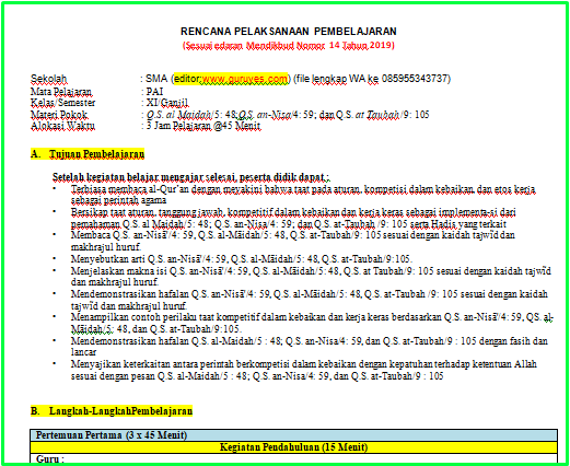 sebelum masuk melaksanakan pembelajaran. RPP SMA/SMK/MA Kelas 11 Semester 1 ini adalah perangkat yang berisi hanya 3 komponen yang