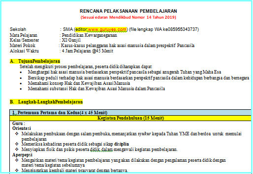 sebelum masuk melaksanakan pembelajaran. RPP SMA/SMK Kelas 11 Semester 1 ini adalah perangkat yang berisi hanya 3 komponen yang
