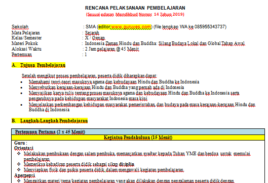 | RPP 1 Lembar Sejarah SMA/SMK Kelas 10 Semester 2 |