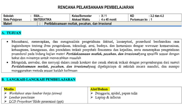 RPP 1 lembar Matematika SMA tidak jauh-jauh dari rencana pembelajaran yang biasa dibuat dengan