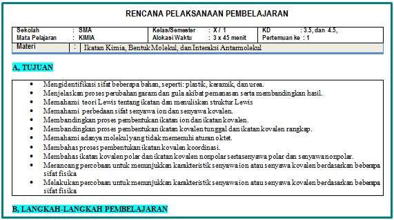 kesempatan ini admin membagikan RPP 1 Lembar Kimia SMA Kelas