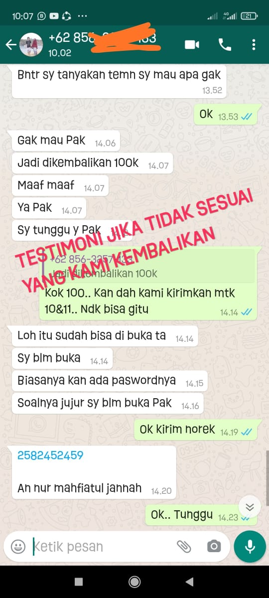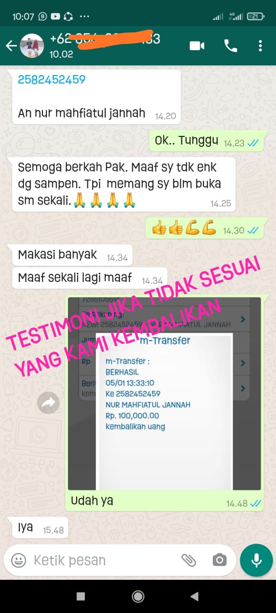 JIKA TIDAK SESUAI UANG KAMI KEMBALIKAN.